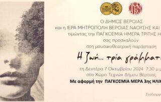 Με εξαιρετική επιτυχία πραγματοποιήθηκε, το απόγευμα της Δευτέρας 7 Οκτωβρίου 2024, στο Χώρο Τεχνών Βέροιας, σε επανάληψη, η μουσικοθεατρική παράσταση