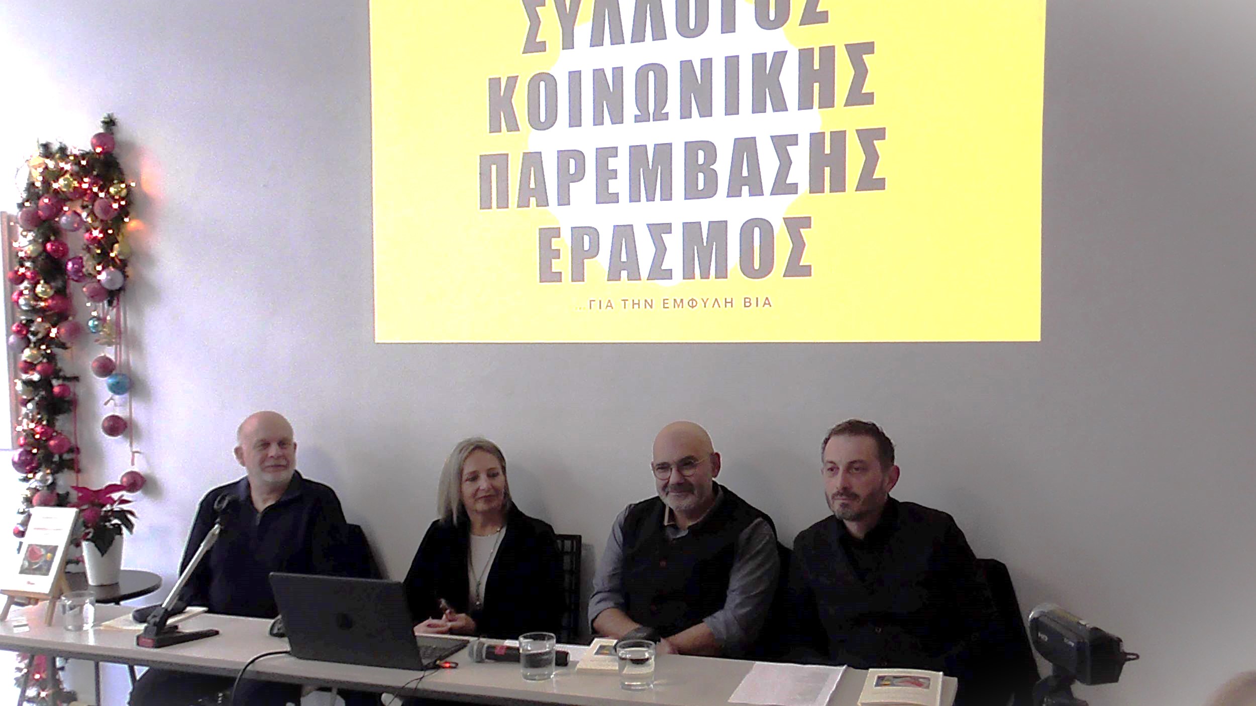 Ο Σύλλογος Κοινωνικής Παρέμβασης «Έρασμος» το 2026 συμπληρώνει 20 χρόνια εντατικού έργου κατά της έμφυλης βίας, διατηρώντας Ξενώνα βραχείας διαμονής θυμάτων βίας και ειδικότερα κακοποίησης γυναίκας – παιδιού, παρέχοντας ΔΩΡΕΑΝ στέγη, σίτιση, ιατροφαρμακευτική περίθαλψη, ψυχοκοινωνική στήριξη και νομική συμβουλευτική, ενώ ταυτόχρονα παρέχει ΔΩΡΕΑΝ υπηρεσίες και σε εξωτερικά περιστατικά που δε χρήζουν άμεσα φιλοξενίας. Παράλληλα και σε επίπεδο πρόληψης διενεργεί δράσεις ενημέρωσης και κοινωνικής ευαισθητοποίησης με βιωματικά εργαστήρια, προγράμματα ενημέρωσης της μαθητικής κοινότητας, θεματικές καλλιτεχνικές εκδηλώσεις, ώστε να επικοινωνήσουμε το έργο μας παντού. Η Τέχνη σε αυτή μας την προοπτική είναι σύμμαχος και ισχυρό εργαλείο μετάδοσης ηχηρών μηνυμάτων και αποτυπωμάτων στις ψυχές των ανθρώπων, διεγείροντας συναισθήματα, συντονίζοντας τις αισθήσεις, προκαλώντας ερεθίσματα, αφυπνίζοντας συνειδήσεις…».