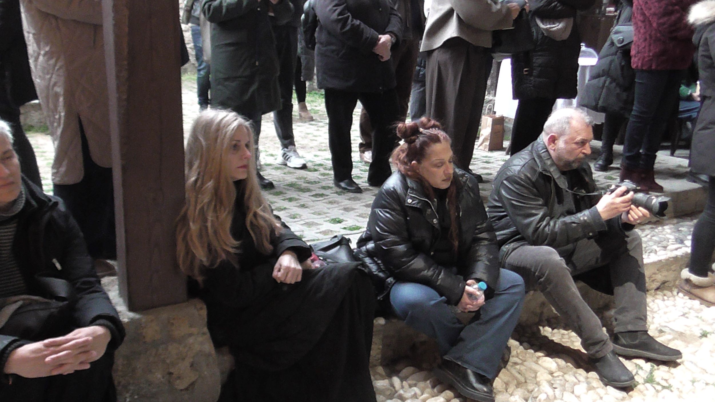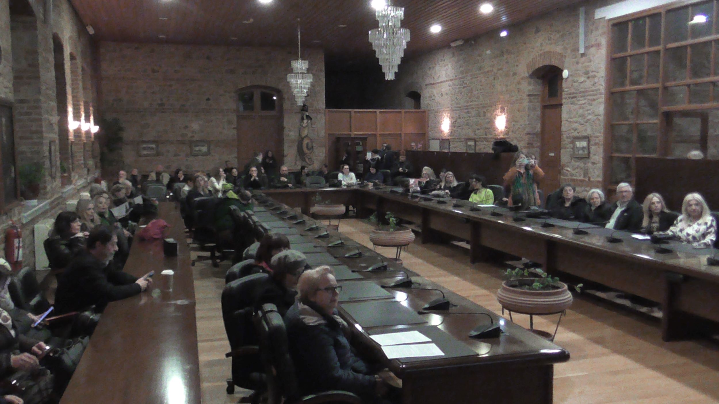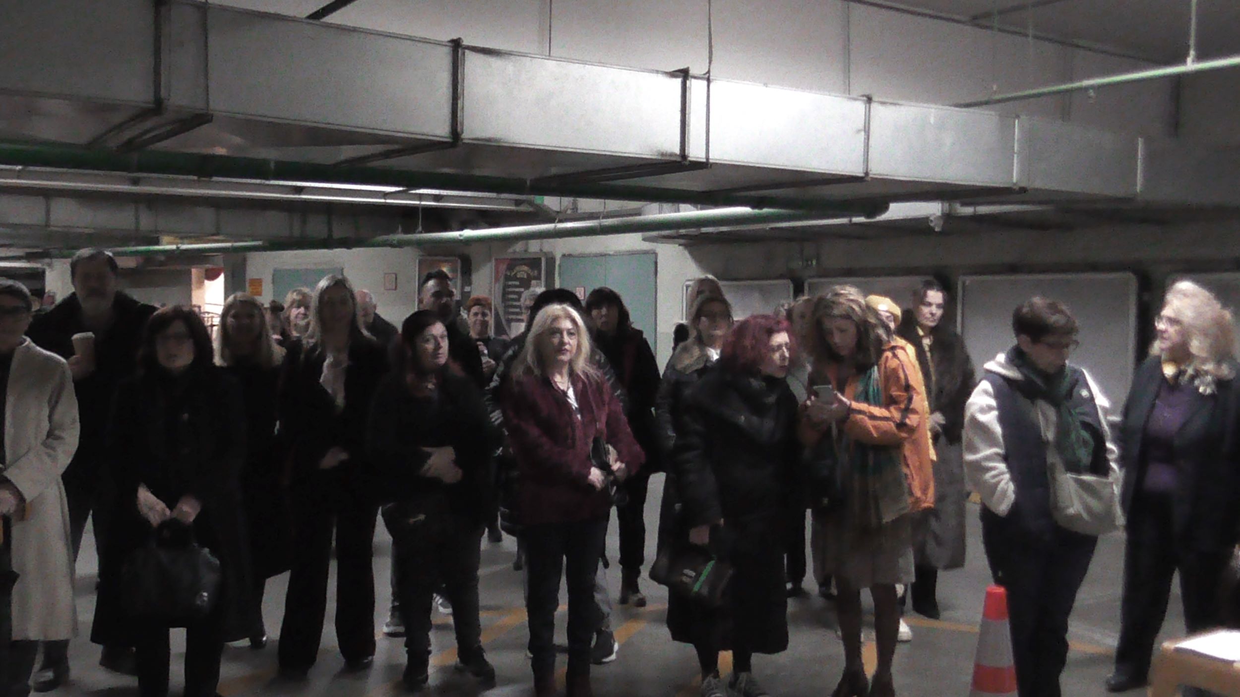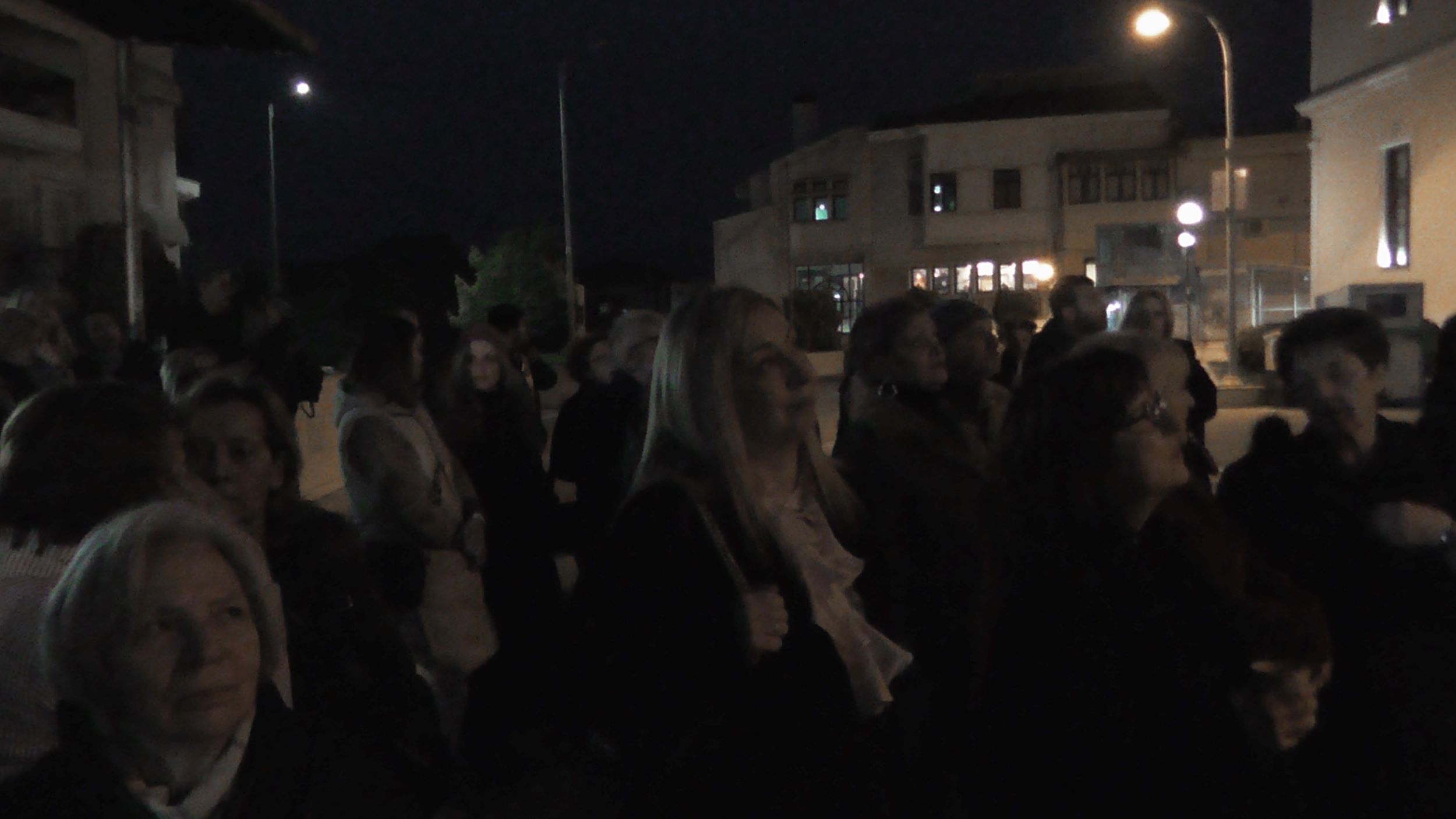 Ακολούθως στο Υπόγειο του Parking της Πλατείας Δημαρχείου, η Εικαστικός Κατερίνα Αναστασίου παρουσίασε το video art «κατάλοιπο» και την Performance «Πλεξούδες Σιωπής», διερευνώντας την κληρονομιά των έμφυλων ρόλων και τις κοινωνικές προσδοκίες που συνοδεύουν τη γυναίκα στον χρόνο. Μέσα από την επανάληψη μιας ατέρμονης χορογραφίας σε ένα οικείο αλλά κλειστοφοβικό περιβάλλον, κάθε κλωστή γίνεται υποχρέωση και κάθε πέτρα απαίτηση. Στα άνθη και τις πέτρες ο κόπος συσσωρεύεται, ενώ η πιθανότητα αποδέσμευσης εμφανίζεται διακριτικά, σαν μία ρωγμή που επιτρέπει στο νερό να κυλήσει ελεύθερο. Στις «Πλεξούδες Σιωπής», με ορατά σημάδια επιβολής και συλλογικής συμμετοχής στο πρόσωπο,  το σώμα γίνεται πεδίο κοινωνικής κατασκευής και ελέγχου. Τα μακριά μαλλιά, σύμβολο ταυτότητας και θηλυκότητας, πλέκονται σφιχτά, παραπέμποντας στα διαχρονικά χτενίσματα, και στις αιώνιες απαιτήσεις για αξιοπρέπεια, ευπρέπεια και υποταγή των γυναικών. Μέσα από το πλέξιμο, ως χειρονομία πειθαρχίας, αποκαλύπτονται οι αόρατες κοινωνικές πιέσεις που περιορίζουν και διαμορφώνουν τη ζωή του σώματος.  Στο δρώμενο συμμετείχαν οι: Αλεξάνδρα Γκίκα, Κατερίνα Γρηγοριάδου, Ελένη Ντόντου, Υακίνθη Σταμπολή, Γεωργία Ξενοφώντος, Ειρήνη Κουρκούλη και ο Βαγγέλης Τολίκας.