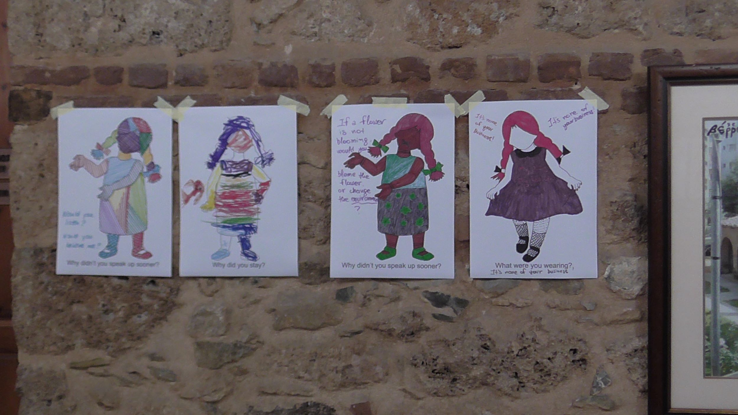 Τέσσερεις  γυναίκες, που κατοικοεδρεύουν,  Άννη Καλτσίδου και Στέλλα Κολυβοπούλου στη Θεσσαλονίκη,  η Γεωργία Λαλέ στη Νέα Υόρκη, η  Μαρία Σαλουβάρδου στο Βερολίνο και η Κατερίνα Αναστασίου στην πόλη μας, συναντήθηκαν, συνενώνοντας τις ευαισθησίες και τις χαρισματικές τους ψηλαφήσεις, κινητοποιώντας ισχυρά συναισθήματα, συνειρμούς και ευαισθητοποιώντας το κοινό  σε θέματα «ταμπού» που απασχολούν έντονα τον κόσμο μας και άπτονται μιας ειδικής αντιμετώπισης όχι μόνο από τους φορείς αλλά και από την ίδια την κοινωνία.