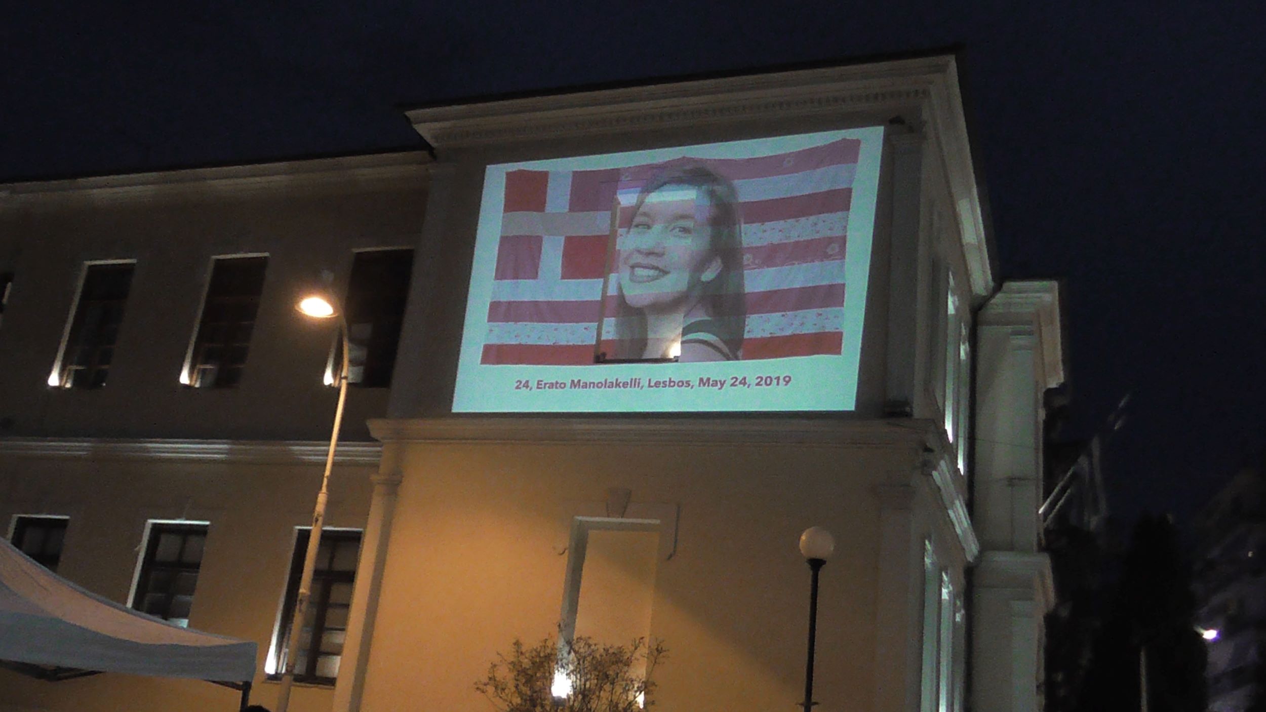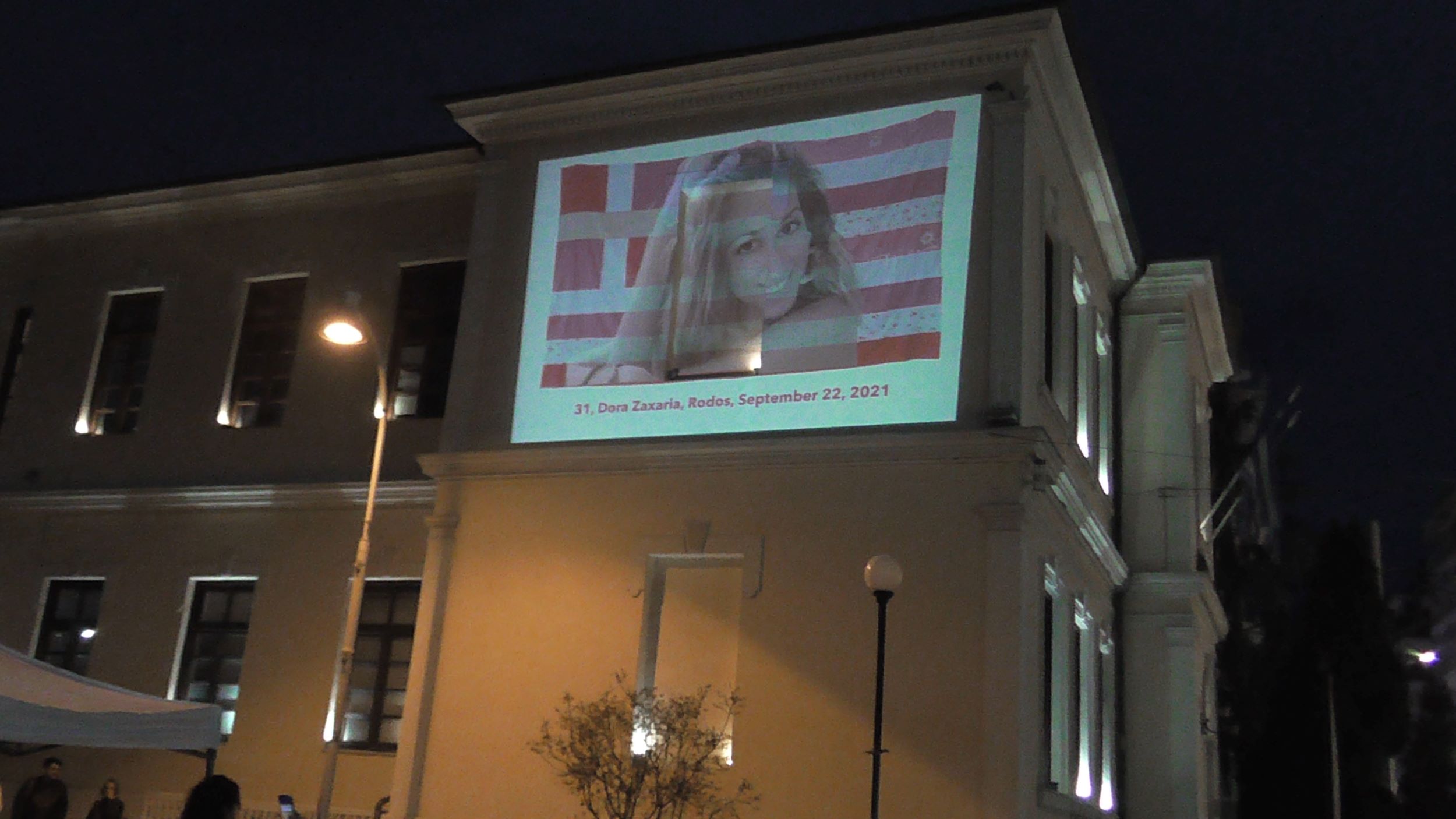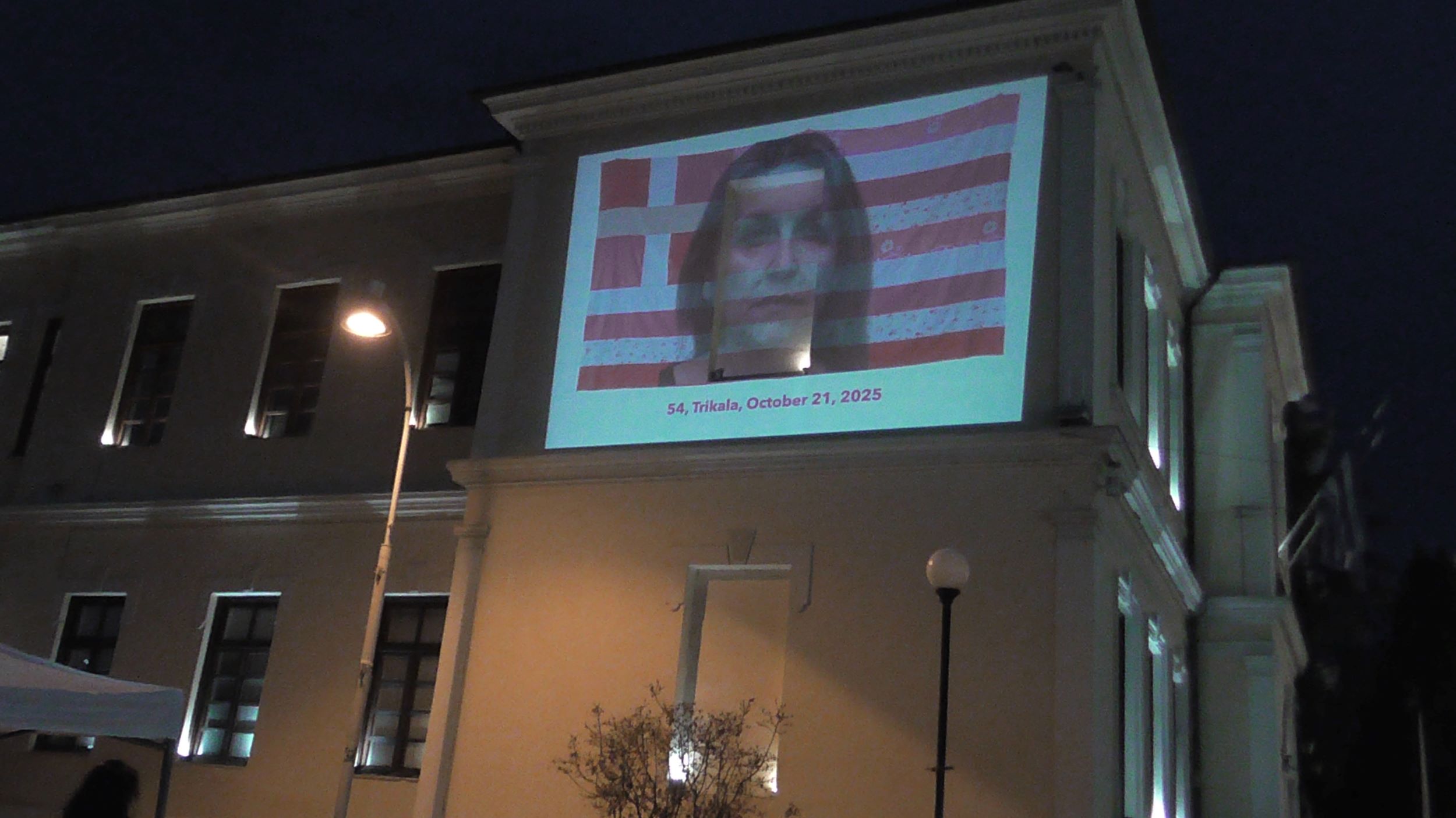 Τέλος η διαδρομή κατέληξε στον αύλειο χώρο της πλ. Δημαρχείου, όπου παρουσιάστηκε σε video wall απέναντι από τις κερκίδες της πλατείας, το έργο «Pink Flag» (Ροζ σημαία) της Γεωργίας Λαλέ, εν είδει μνημοσύνου των θυμάτων των γυναικοκτονιών, με ονομαστικές αναφορές. Μια σημαία φτιαγμένη από χρησιμοποιημένα σεντόνια που της χάρισαν, η οποία και έχει γίνει πλέον το σύμβολο κατά των γυναικοκτονιών και της έμφυλης βίας, καθώς και το σύμβολο κατά της λογοκρισίας στην Τέχνη, Το έργο θίγει κοινωνικά ζητήματα, ενεργοποιεί τη μνήμη, ευαισθητοποιεί τον θεατή και αποτίνει φόρο τιμής στα θύματα.
