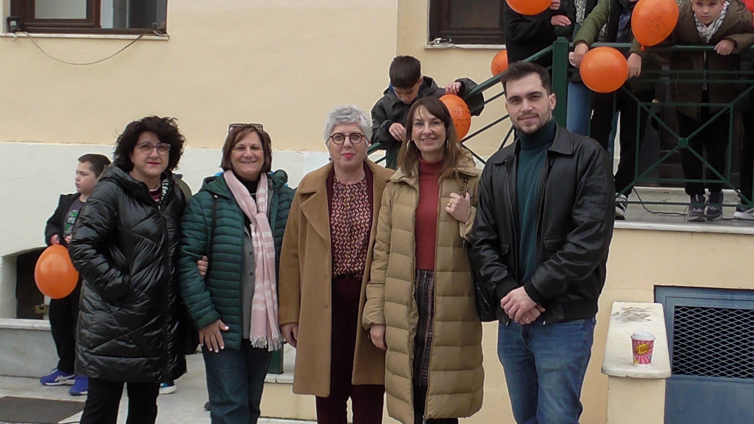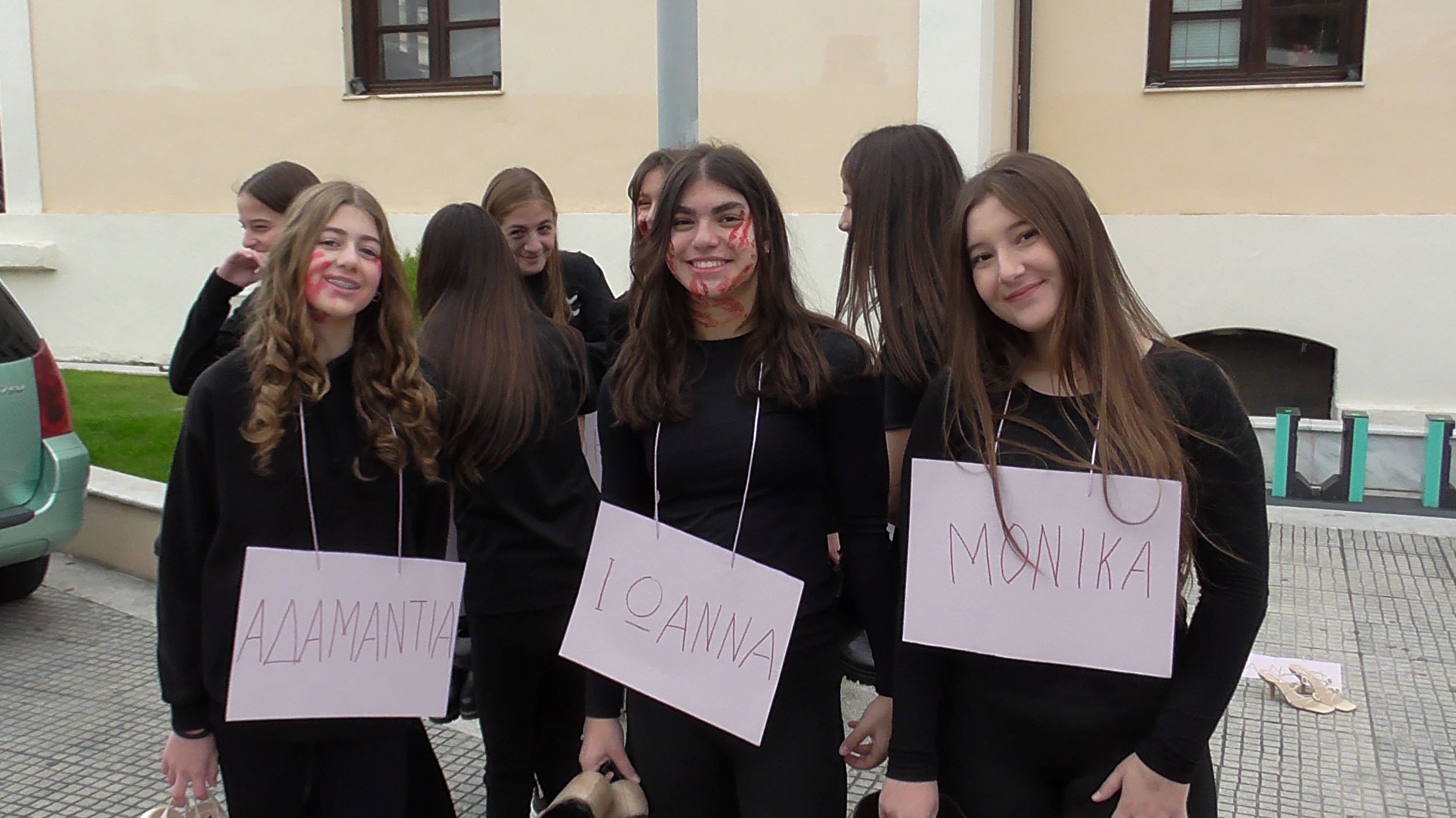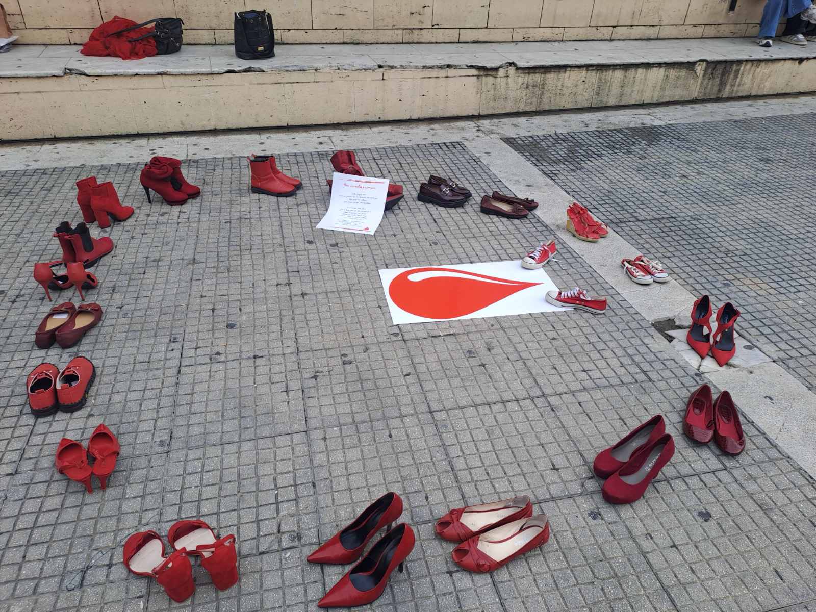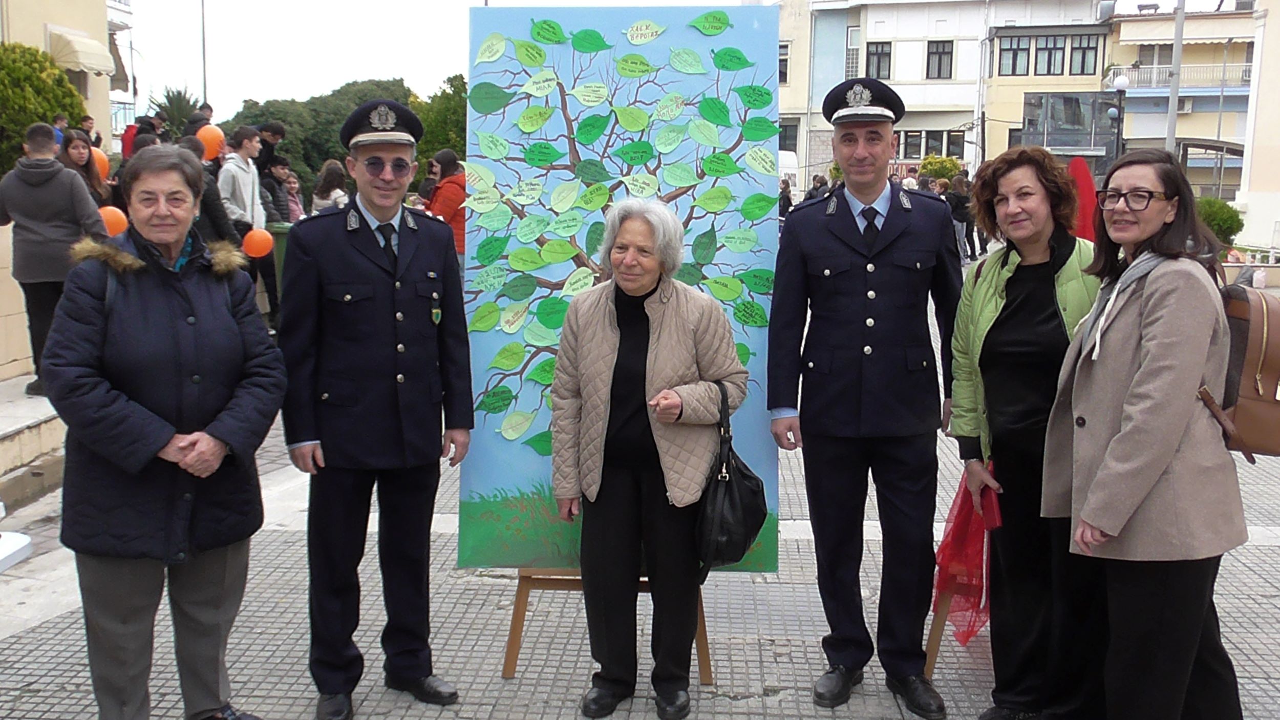 Πιο συγκεκριμένα, τοποθετήθηκαν σε κυκλική παράταξη γυναικεία παπούτσια ως εικαστικό δρώμενο καταγγελίας του φαινομένου των γυναικοκτονιών, σε παγκόσμιο επίπεδο, ενώ παράλληλα μικροί και μεγάλοι μαθητές, με πορτοκαλί μπαλόνια – το χρώμα κατά της έμφυλης βίας –  στα χέρια, ανάρτησαν, ταυτόχρονα, αυτοκόλλητα σε σχήμα φύλλων δένδρου, με μηνύματα κατά της βίας και υπέρ της ισότητας, πάνω σε πίνακα ζωγραφικής -σύμβολο του «δέντρου της ισότητας», που φιλοτέχνησε ο Εικαστικός Δημήτρης Μαυροκεφαλίδης.