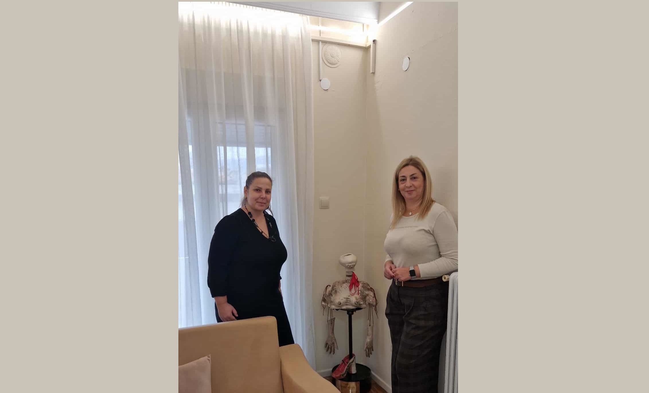 Την Υπεύθυνη Διδασκαλίας του Τμήματος Κεραμικής των Εικαστικών Εργαστηρίων του Δήμου Νάουσας Έλενα Στεργίου υποδέχθηκε το πρωί της Τρίτης 4 Νοεμβρίου 2025 στα γραφεία του Συλλόγου Κοινωνικής Παρέμβασης «Έρασμος» η Πρόεδρος του ΔΣ Ελένη Καζελίδου, παρουσία της